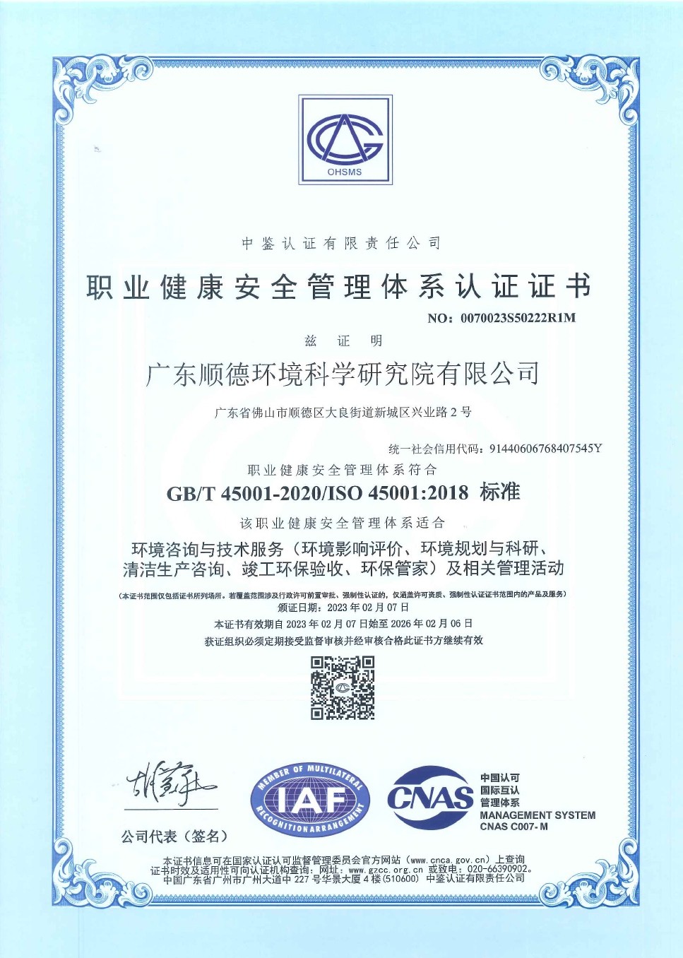 ISO45001職業(yè)健康安全管理體系認(rèn)證證書