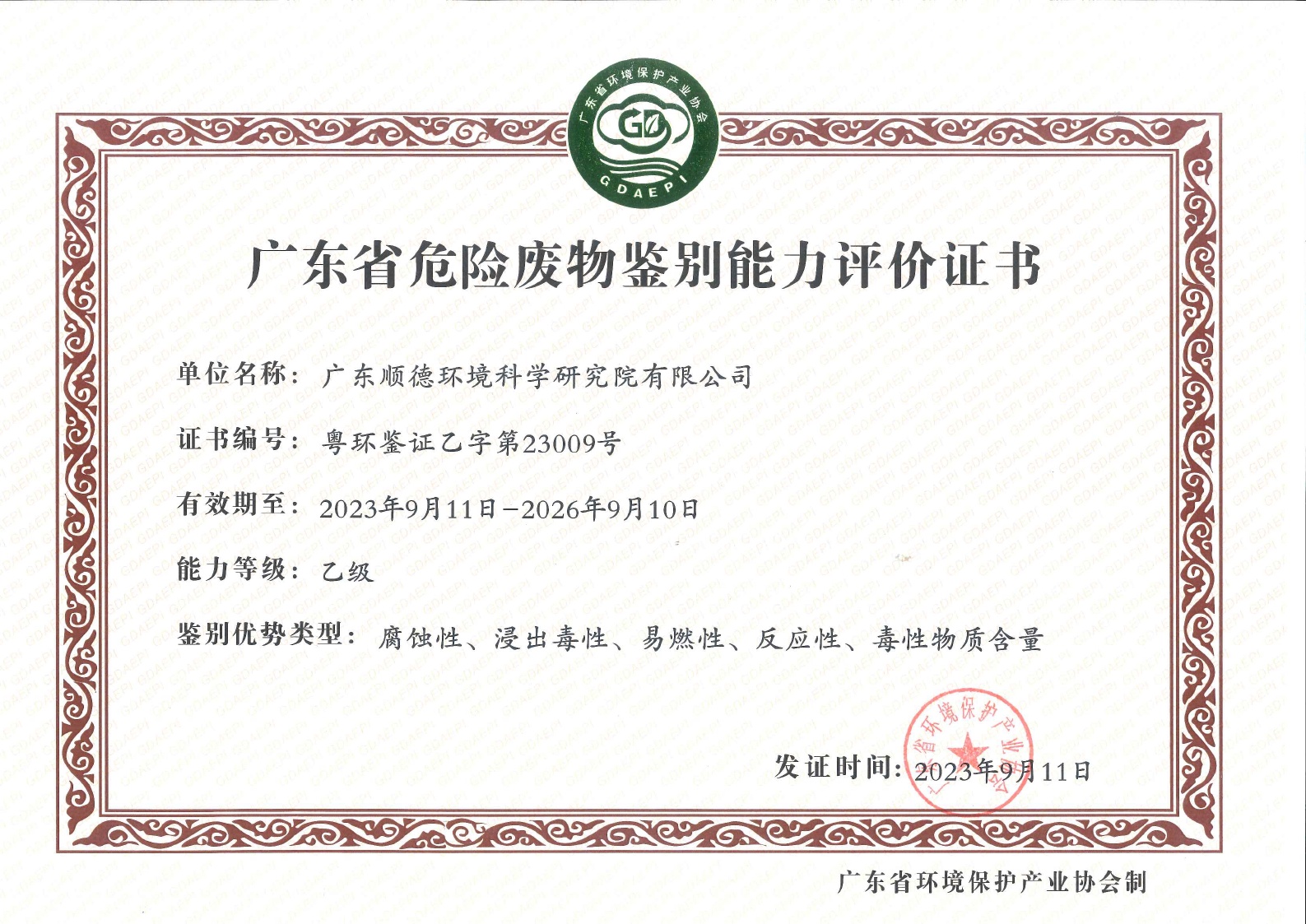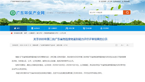 廣東省危險廢物鑒別能力評價證書